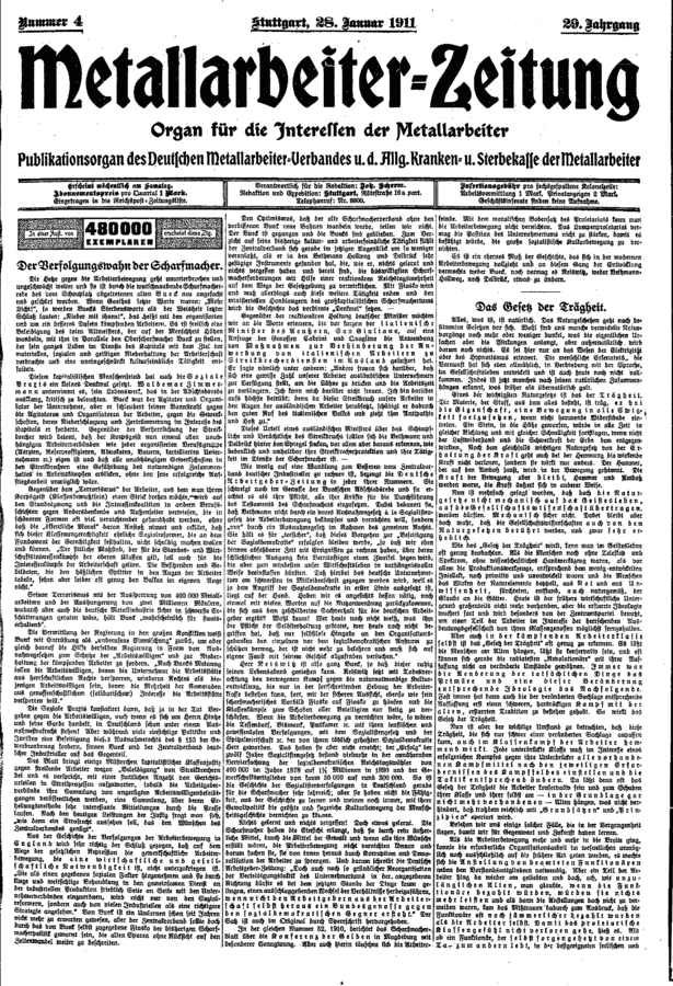 Gewerkschaftspresse / Deutsche Metall-Arbeiter-Zeitung / 1911 / Ausgabe 004