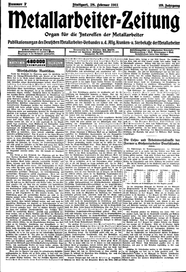Gewerkschaftspresse / Deutsche Metall-Arbeiter-Zeitung / 1911 / Ausgabe 007