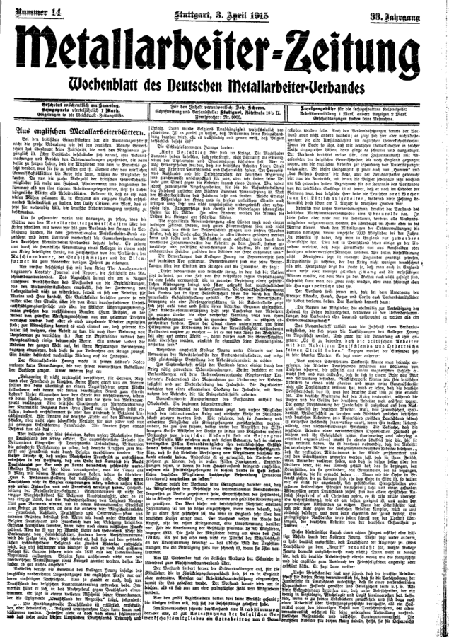 Gewerkschaftspresse / Deutsche Metall-Arbeiter-Zeitung / 1915 / Ausgabe 014