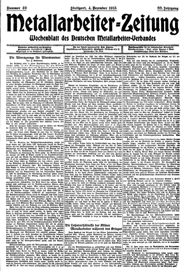 Gewerkschaftspresse / Deutsche Metall-Arbeiter-Zeitung / 1915 / Ausgabe 049