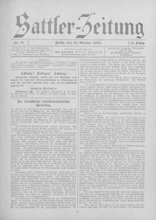 Gewerkschaftspresse / Sattler-Zeitung / 1900 / Ausgabe 021