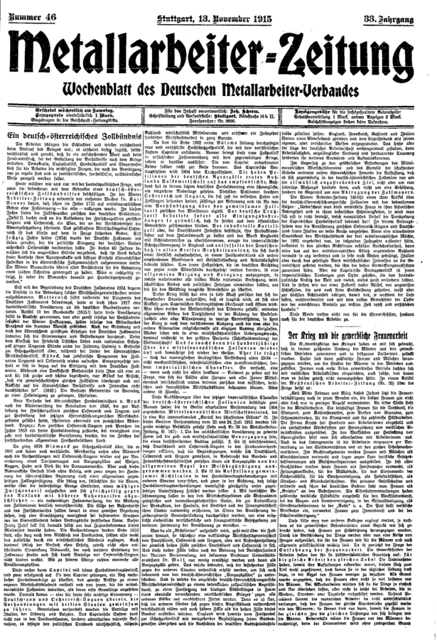 Gewerkschaftspresse / Deutsche Metall-Arbeiter-Zeitung / 1915 / Ausgabe 046