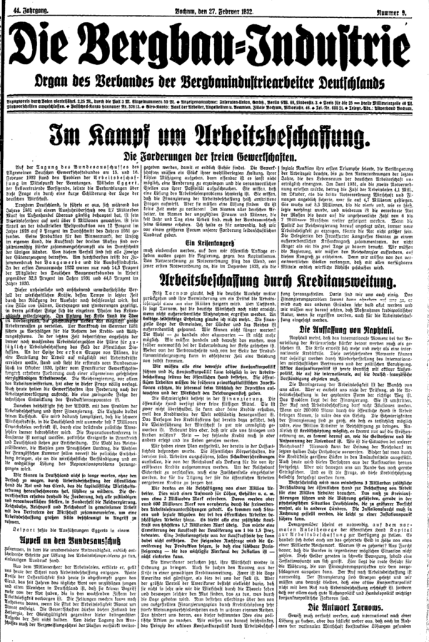 Gewerkschaftspresse / Die Bergbau-Industrie / 1932 / Ausgabe 009