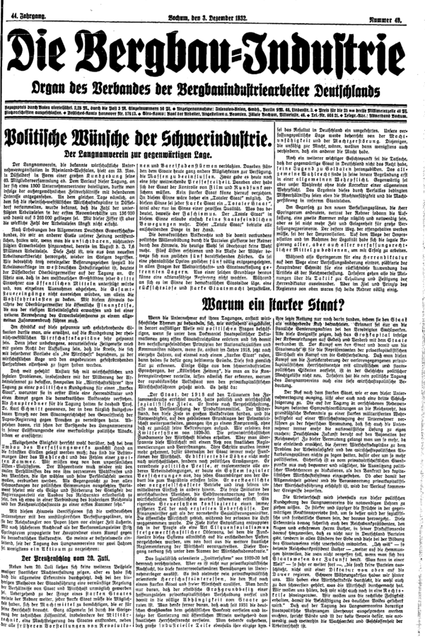 Gewerkschaftspresse / Die Bergbau-Industrie / 1932 / Ausgabe 049
